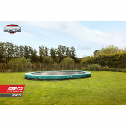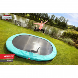 Children from 6 years old can jump on the BERG Garden Trampoline Grand Champion InGround until their hearts content. Through the combination of a rectangular and round shape the trampoline is more stable and has a larger jumping area. The larger jumping area is also due to the TwinSprings in V formation. The AirFlow technology adds to your jumping strength because the high quality AirFlow jumping mat provides you up to 50% more air-time and the low air resistance results in especially great jumps.